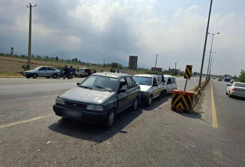 تصادف زنجیرهای ۶ خودرو در بندرگز